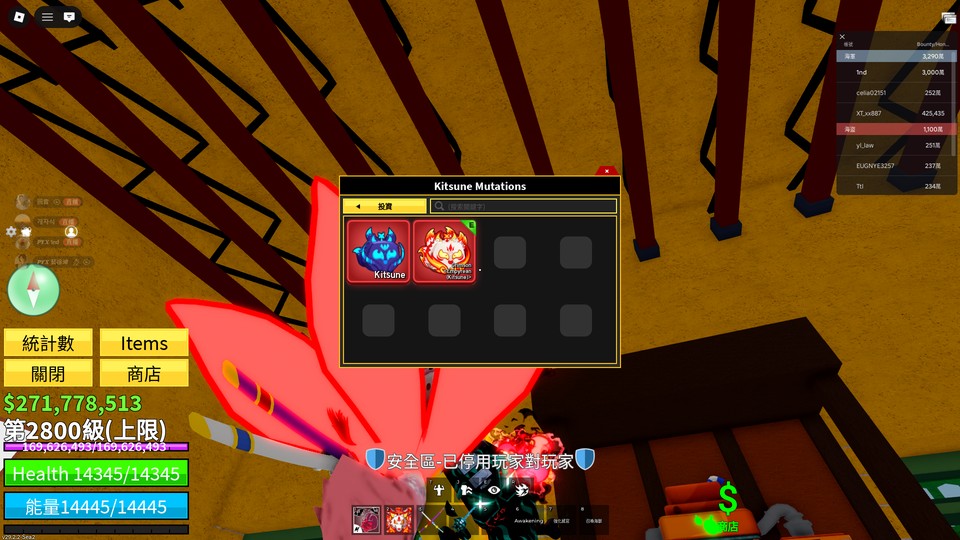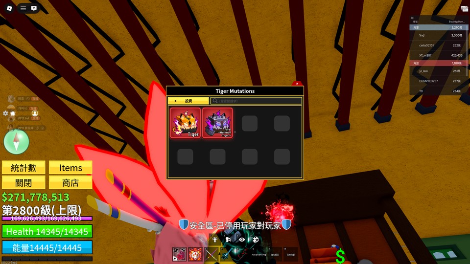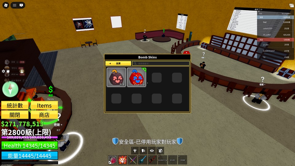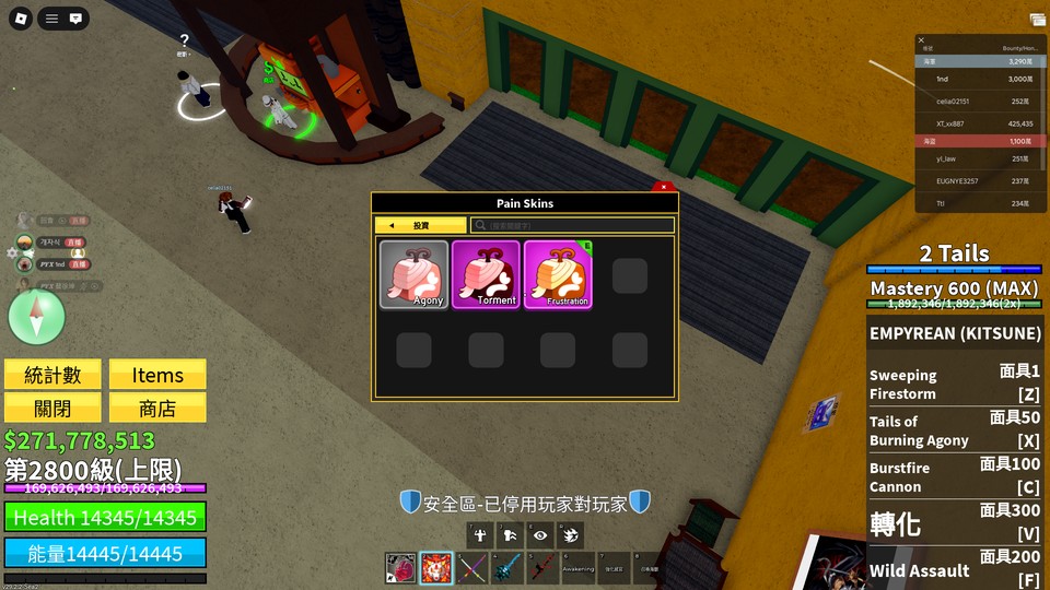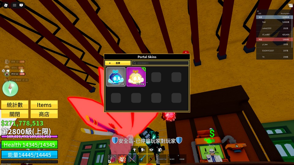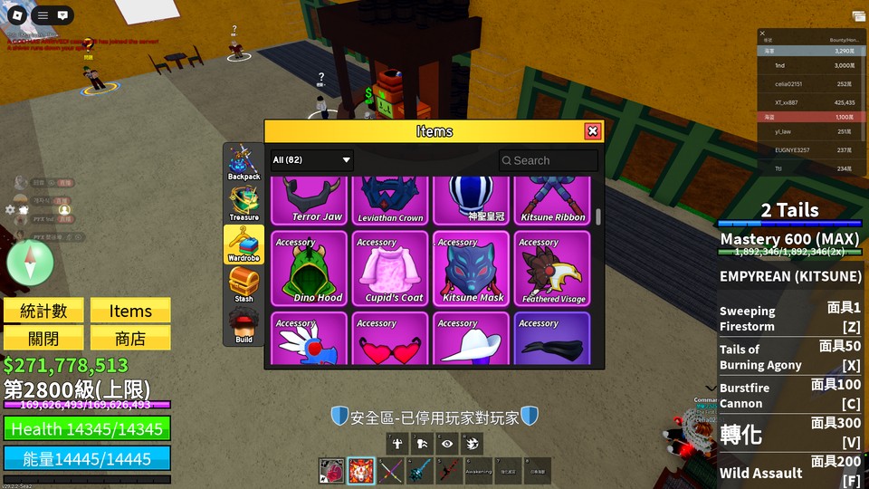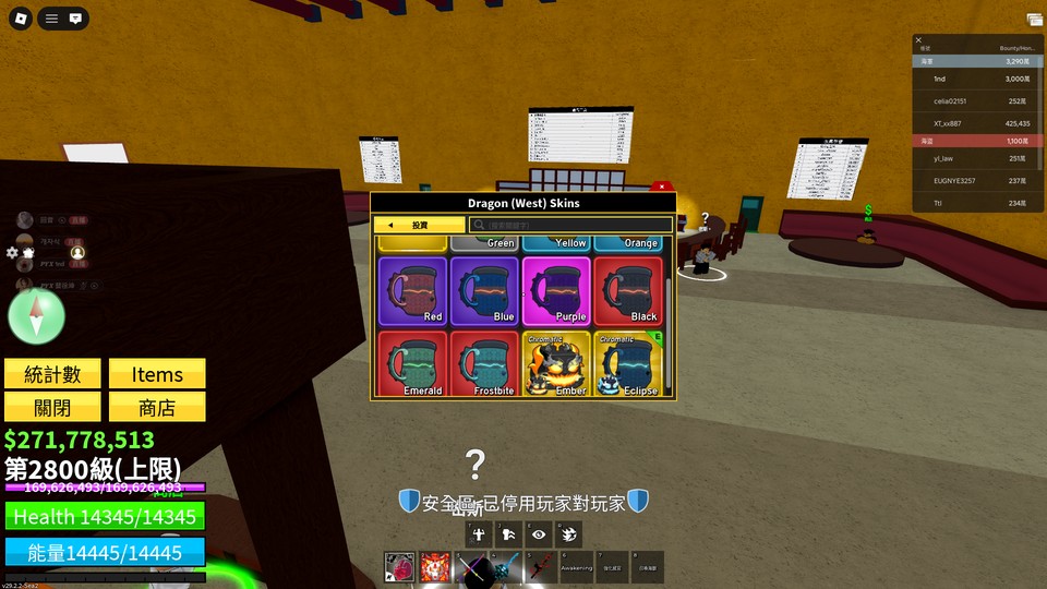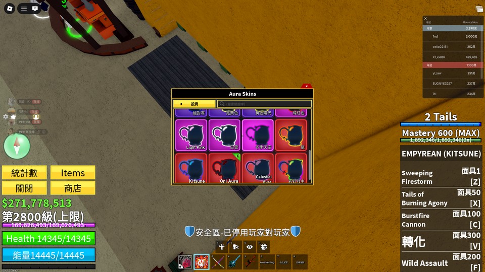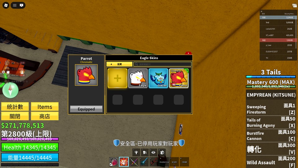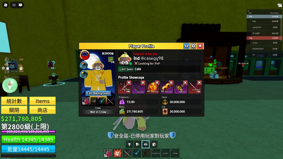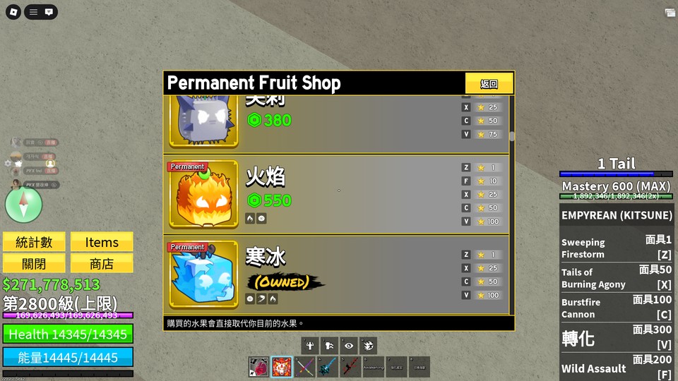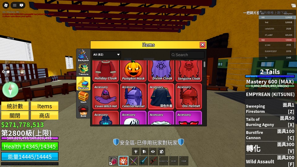 大部分刀、果實、拳法、槍都600精通全手動練等 多稀有絕版皮膚 剩餘2.7億現金 7萬F幣