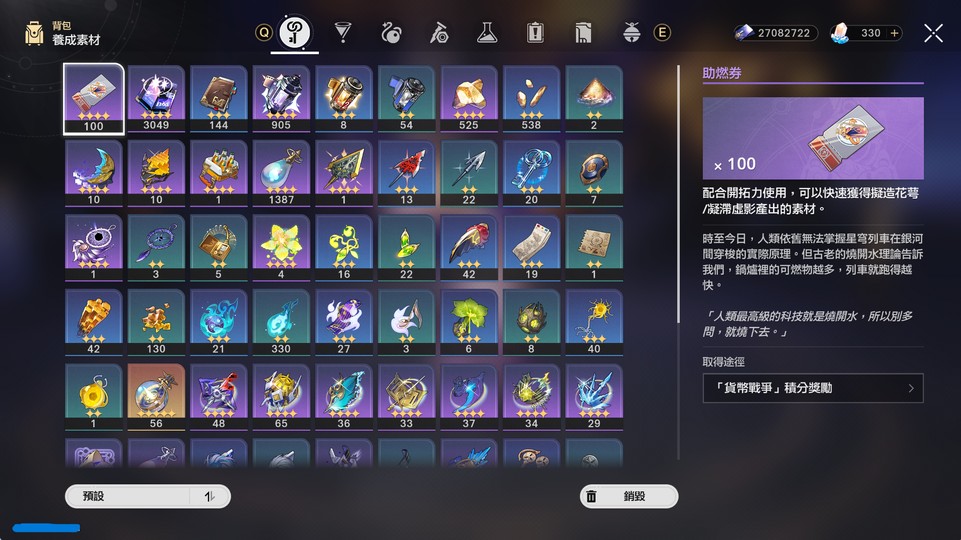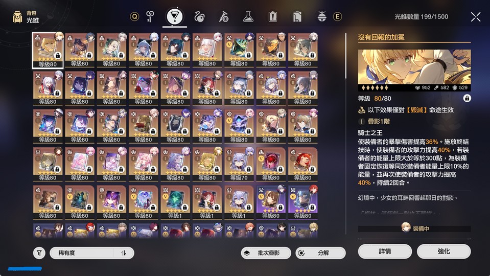 該練的技能都有練滿,想單獨看哪個角色遺器的再告知