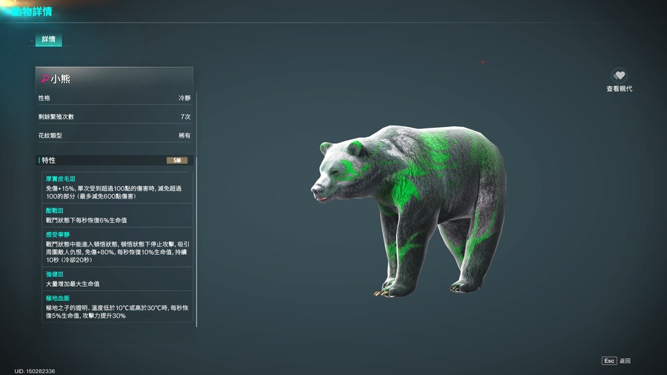 畢業五詞條:酣戰3 / 強健3 / 感受寧靜3 / 厚實皮毛3 / 極地血脈