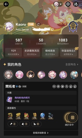 【女、70等、28金角、19金專】女主 70等 遐蝶3+1 忘歸2+1 長夜1+0 昔漣0+1 風菫0+1 緹寶