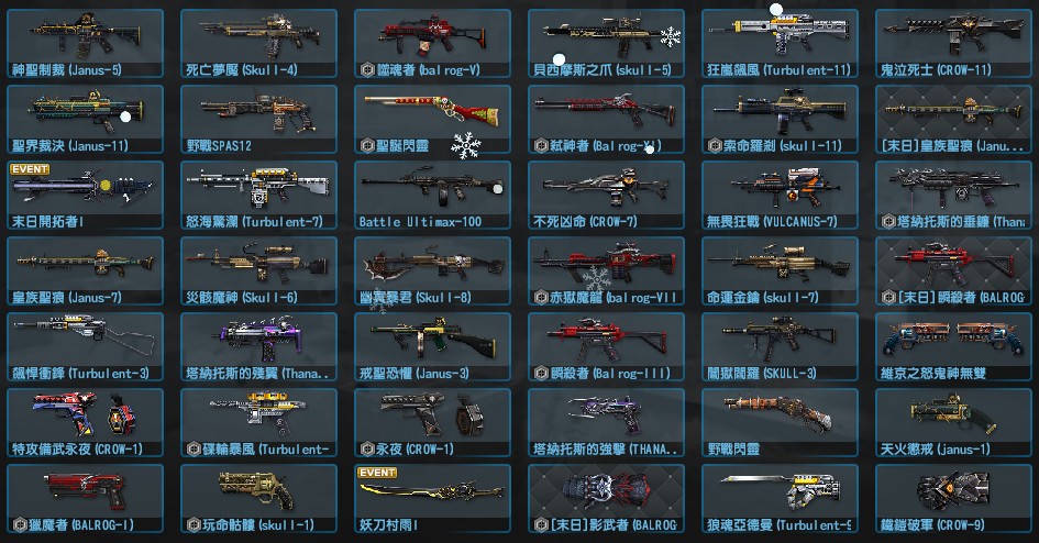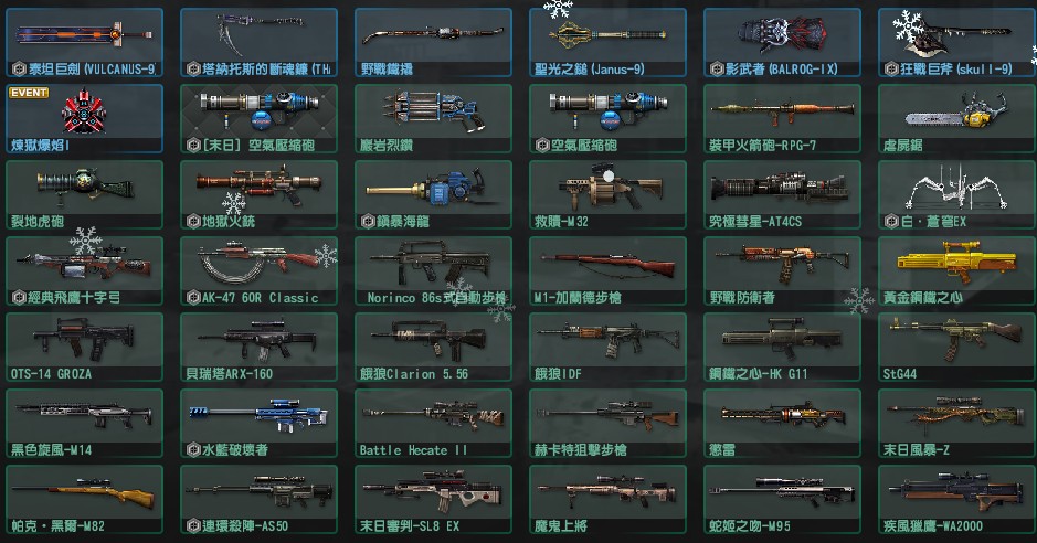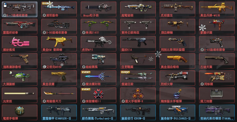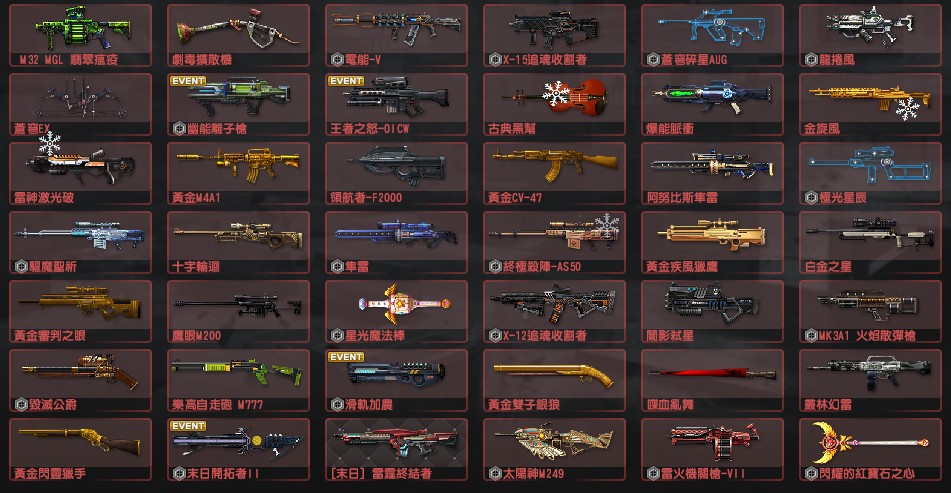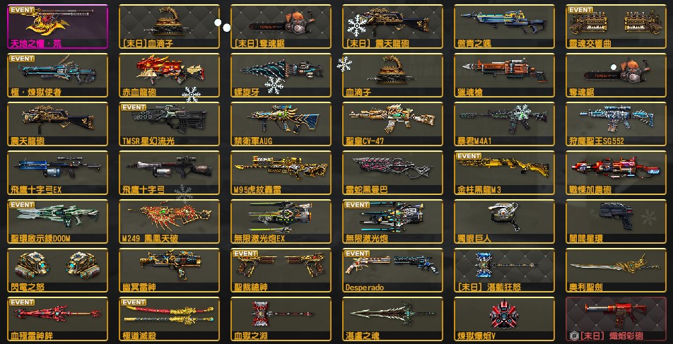 【1史詩武器、40王牌武器、19王牌角色】主打天地,荒、無限激光EX、鷹眼、紅麥、古典及各種稀有絕版武器,已更新