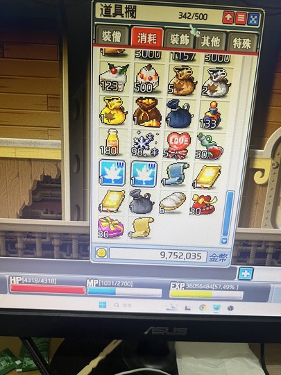 海盜帽7張100%敏、調停者3敏85攻、10攻工地、13力虎披、7力20敏套服、發條鐘、眼鏡、火焰膠囊、5敏玫瑰耳,無祝福乾表膠囊2774/110子彈2874,家家龍蛋洗血水沒追,新年洗血已拿滿