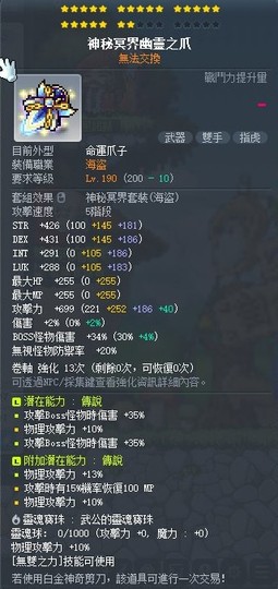 【22C 雙傳指虎 10%物攻 武公】22星 神秘冥界幽靈之爪 70%BOSS+43%物攻 雙傳 指虎