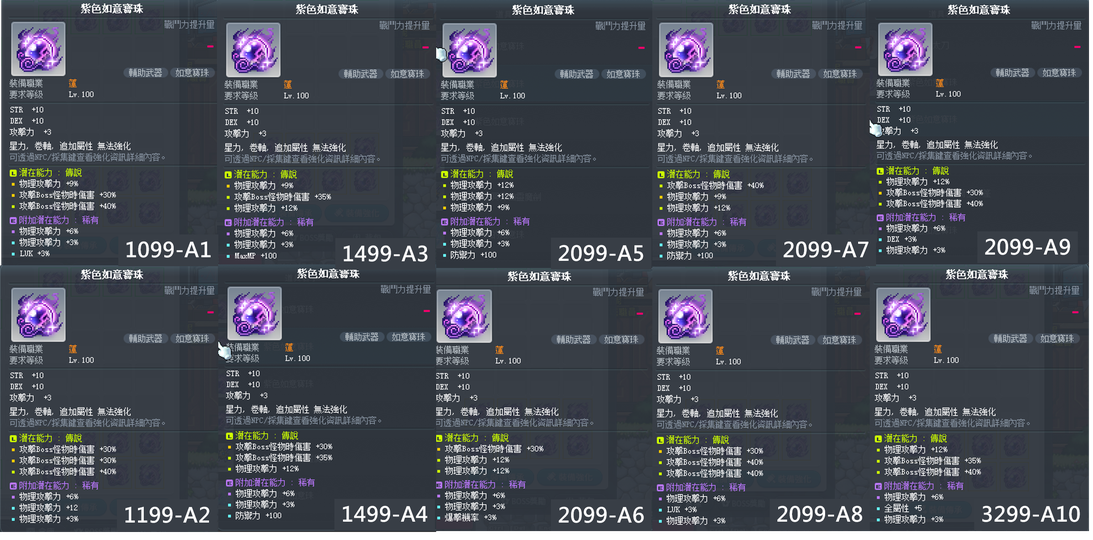 【破盤價紫色如意寶珠(蓮副武器)】主潛能105b/35B21物/65b12物/40B21物/33物附加稀有9%物
