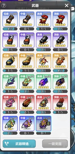 武器:Lv17滿 (遠古中 高 級皆擁有!)
