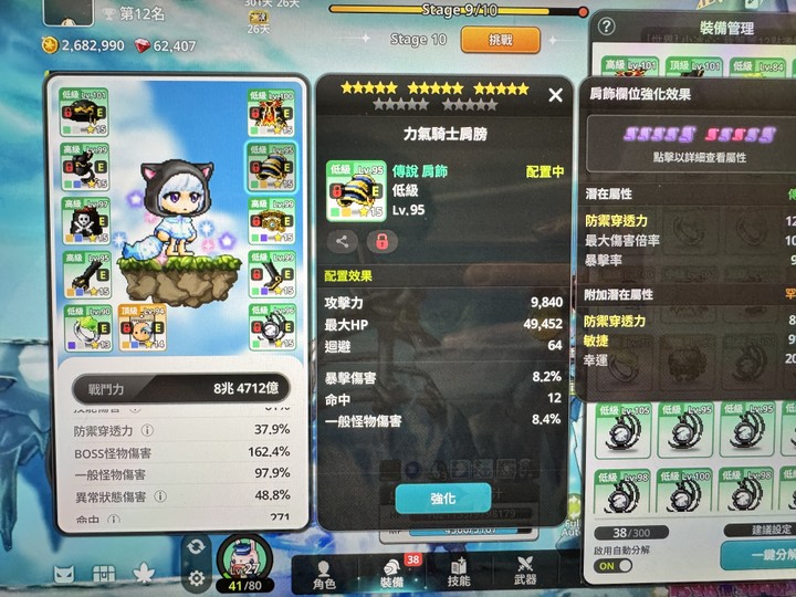 戰力:12.49兆最高(持續上升中)不同組合約9-12兆