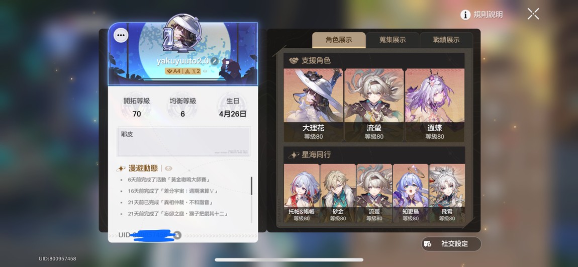 【女、70等、28金角、17金專】2+1遐碟2+1流螢0+1大黑塔記憶戰艦亂破擊破艦隊大黑塔艦隊週年儲值動態名片