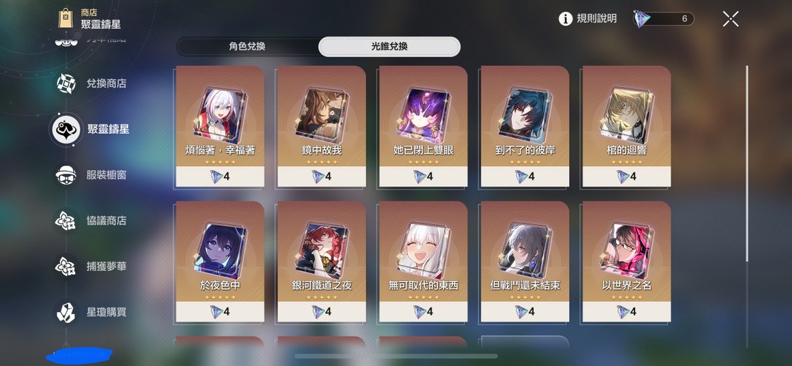 0+1砂金、0+0丹恆騰荒、0+0真理醫生、0+1托帕、0+0飛霄、1+0阮梅