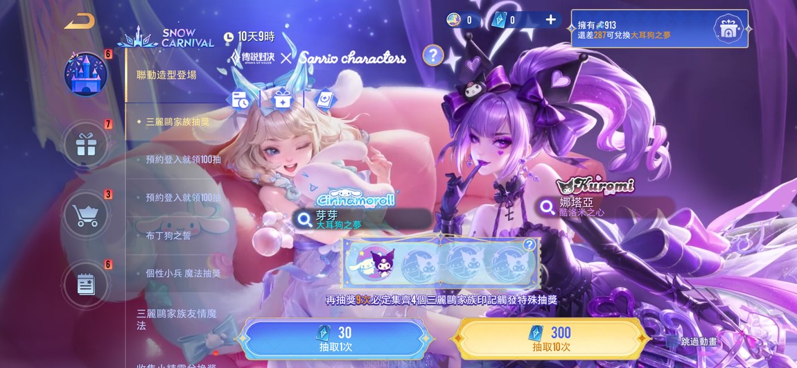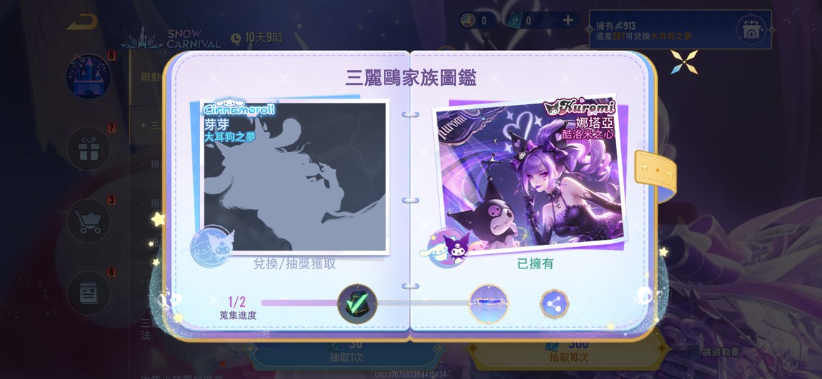【純FB帳、黃金、無VIP、22英、23造】新聯動三麗鷗 酷洛米造型 剛剛賽到 看有沒有人要 差287可以換大耳狗 自行開價