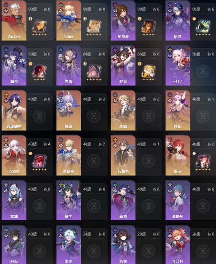 滿級的角色幾乎練度都不錯,角色多隊伍廣能因應許多關卡,有興趣可發問。