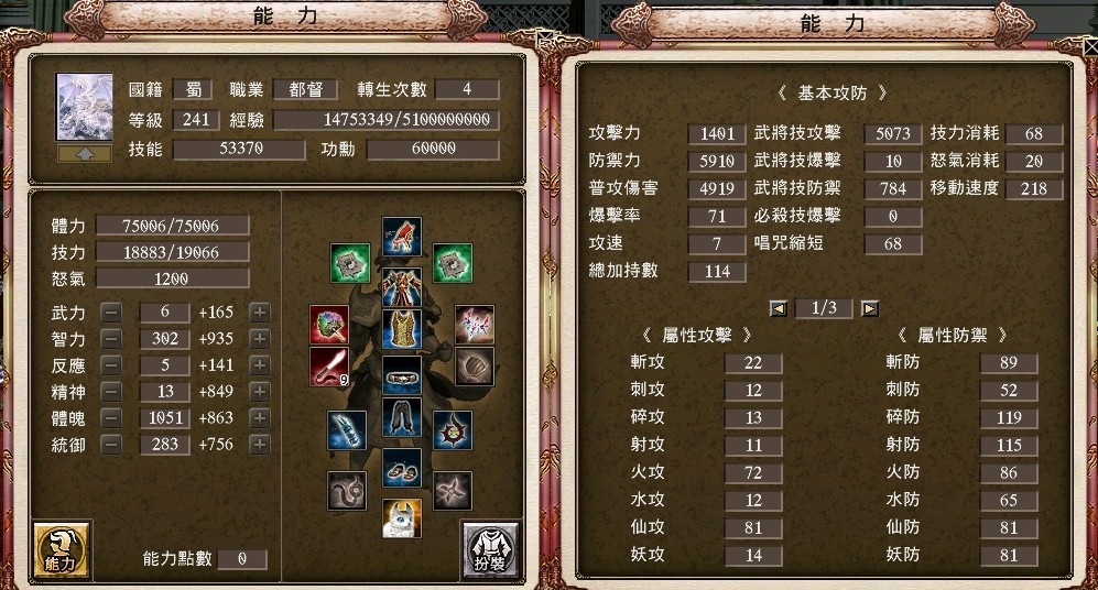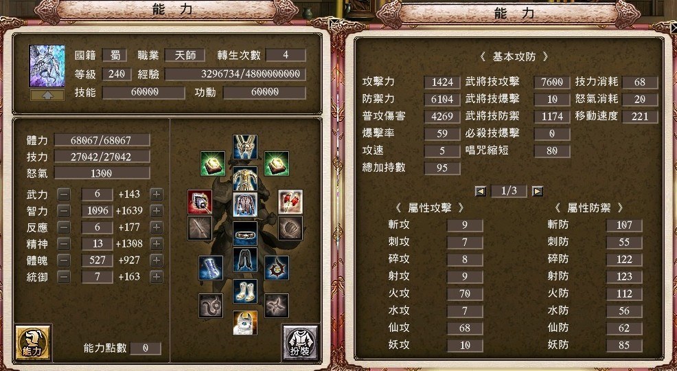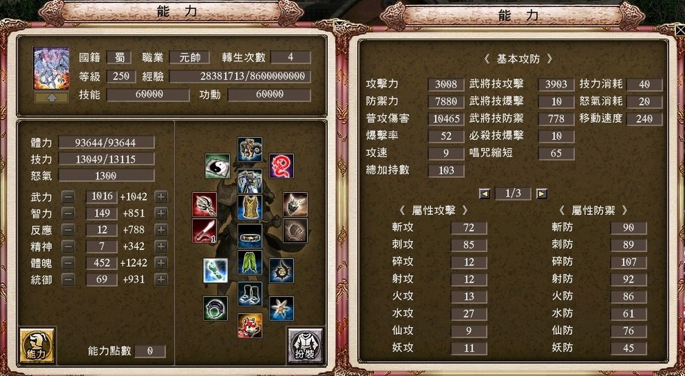 戰技:方天3等、八卦41等、大宛5等
