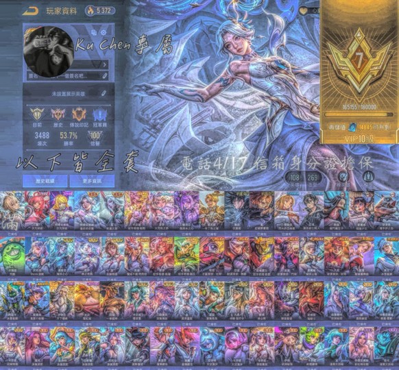 【Garena帳有綁定、星耀、V8、122英、345造】造生次元凡恩堇基德葵海月落密利姆靈荒劍咒術虎杖町錡波動涅槃悟空鶴羽櫻吹雪月落!