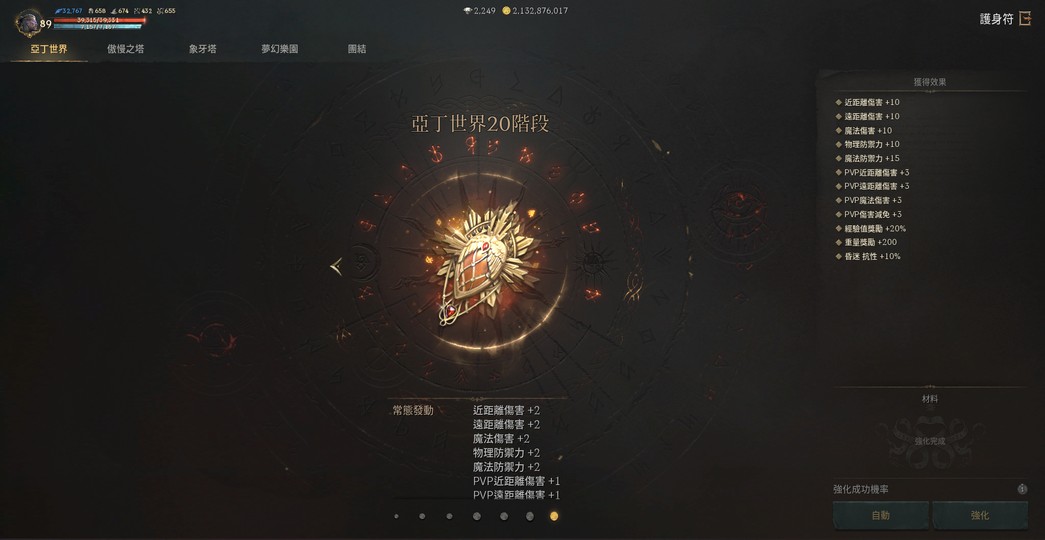 亞丁世界(20階)、扭曲不幸(20階)、恐懼死亡(20階)、地獄不死(20階)、殘酷黑暗(20階)、不滅傲慢(20階)、死神(5階)、象牙塔(20階)、夢幻樂團(19階)、活動團結(63階)