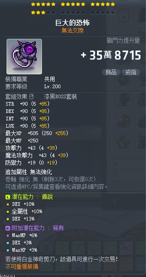 【巨大的恐怖】18C / 33敏 或換同等%力