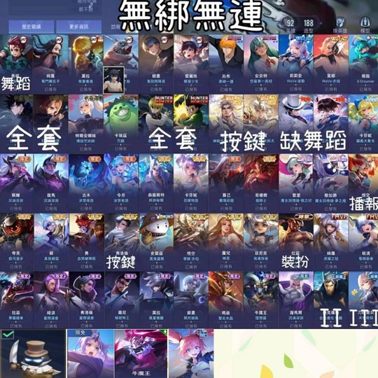 【Garena帳無綁無連、先鋒傳說·天際、V9、105英、227造】大耳狗+伏黑惠+釘崎+蜜莉姆+柯南+基德+彌豆子+善逸+炭治郎+酷皮卡