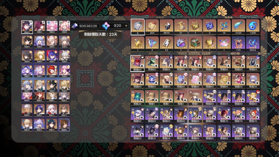 主線進度推至目前版本,月卡今日開始倒數23天.