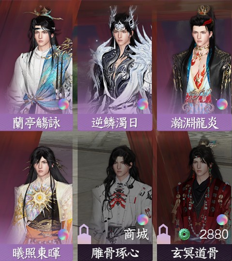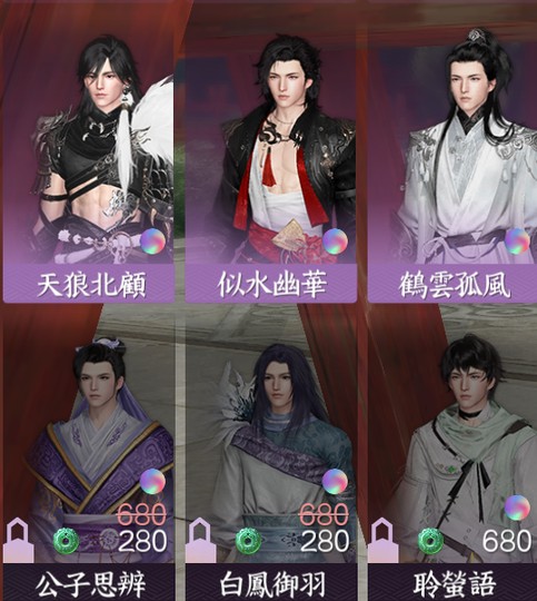 其他外觀:「微光、黑白頭、15套2880、3套俠緣時裝(方承意、葉問舟、姬蜜兒)」