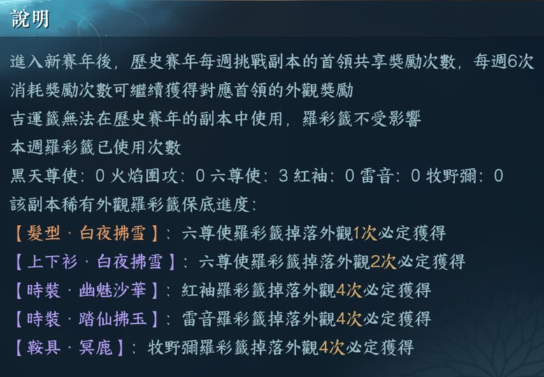 Ps:舞陽白髮快保底了,轉職券也還沒用,也有陰陽丹可轉女角。天賞保底只差95抽(綁)