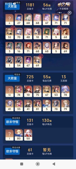 目前角色池小保18抽、光錐池小保17抽、常駐池13抽、聯動光錐池小保61抽