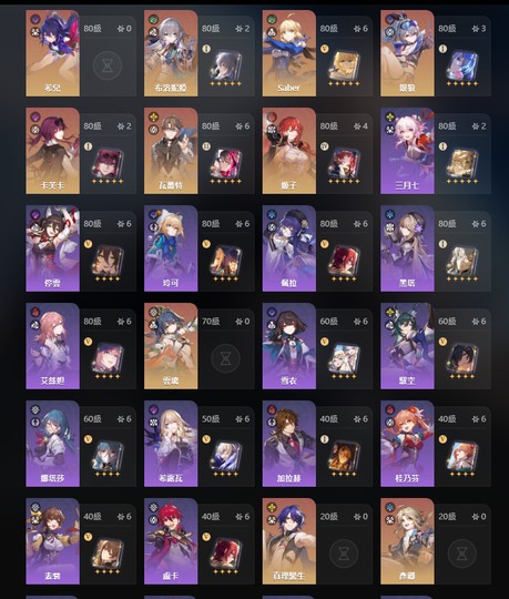 【女、70等、43金角、24金專】全無名勛禮頭像11限定角滿命10滿精昔漣遐蝶黑塔知更鏡流流螢黃泉飛霄Saber