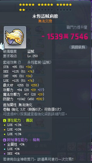 【永恆盜賊肩膀】36%幸次頂永恆盜賊肩膀 全B捲