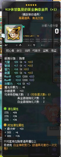 【VIP休菲凱曼的黃金胸章道具】VIP胸章12%力