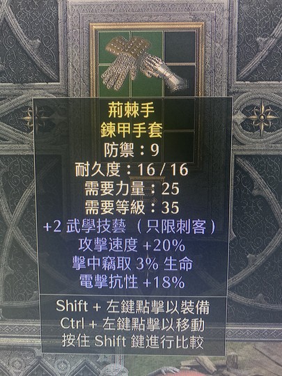 非天梯 刺客手套 2技能 20攻速 3吸血 18電抗