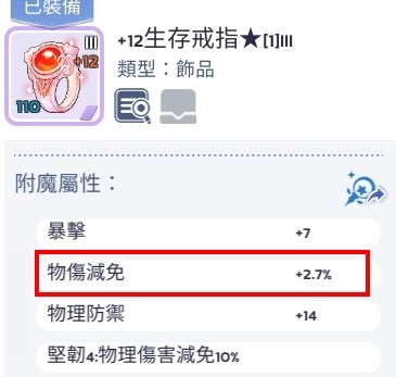 小條屬性大部分都洗到物傷減免、還有全洗滿的~