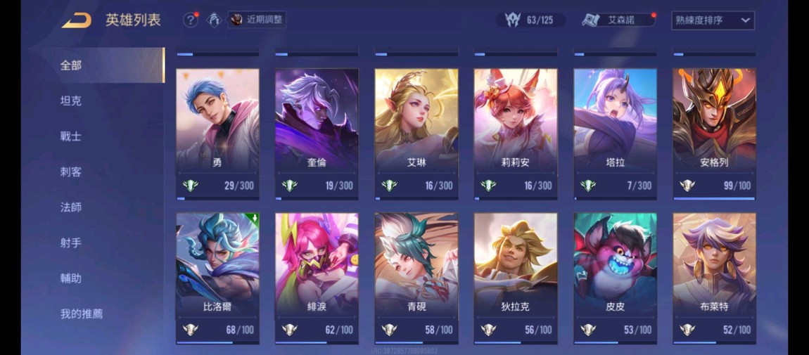 【Garena帳有綁定、鑽石、V7、63英、59造】帳號自己玩自己賣的,Google帳號沒辦法給