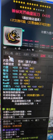 武器主職用潛:70%BOSS13%物攻(次頂職業主流主潛能)