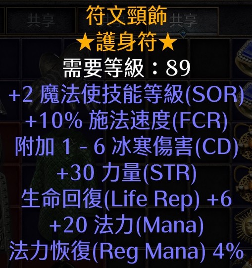 ●+2法師/10%高施/1-6冰傷/30力量/生命回復/20法力/4%法回