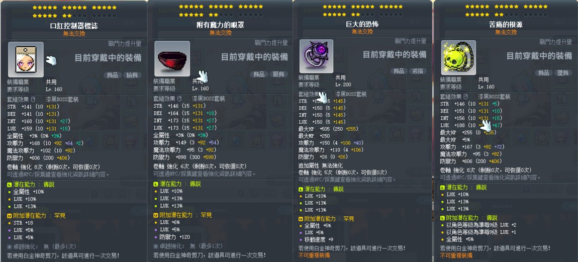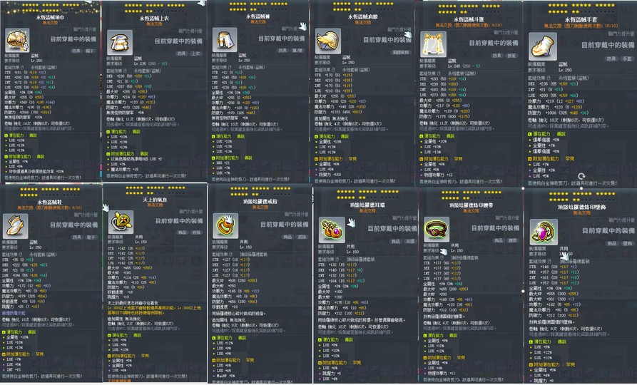 裝備永恆套7set.+漆黑7set 全部都22C傳罕up.附加兩排up