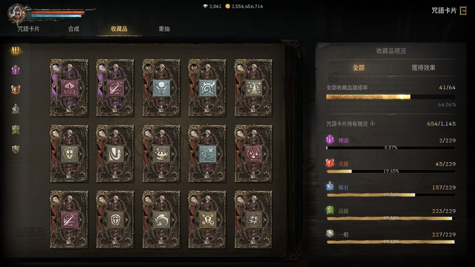 咒語卡蒐藏現況: 64.06% (41/64)