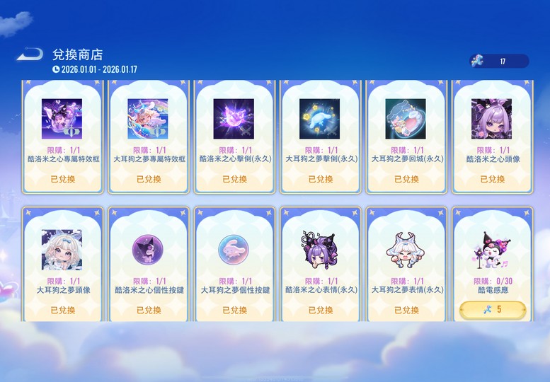 【Garena帳無綁無連、青銅、V7、1英、1造】美樂蒂庫酷洛米大耳狗全部全套周邊全換呂布遇見神鼓銀晝白虎志愛理聖誕單冠王絕品帳號