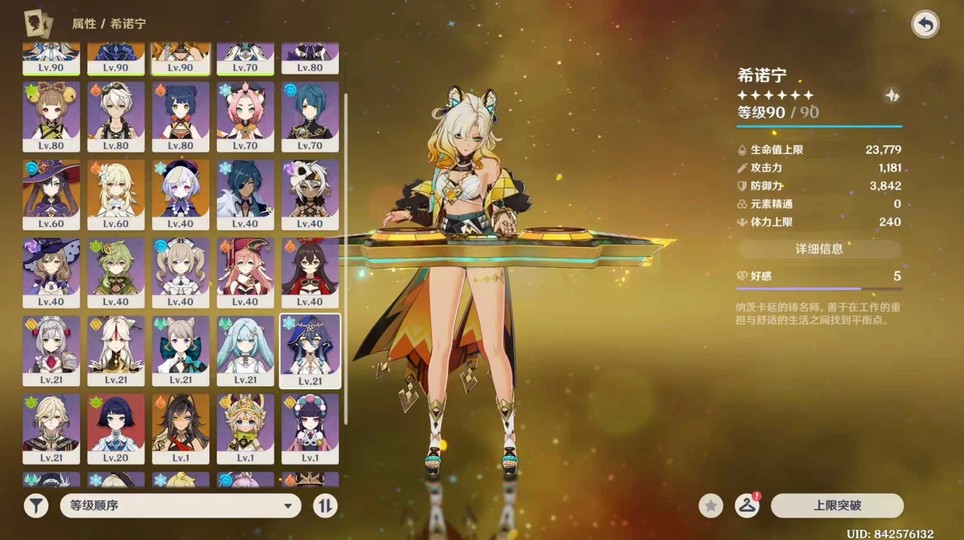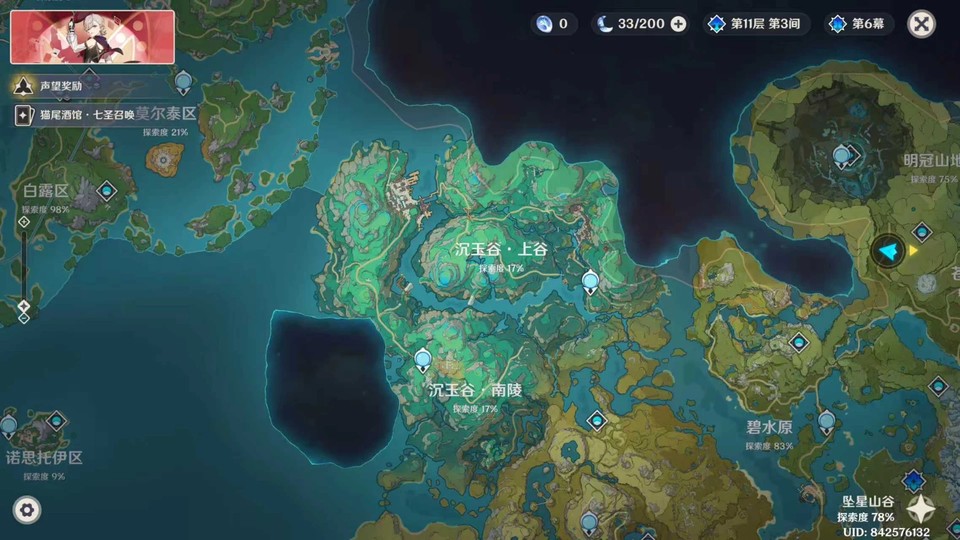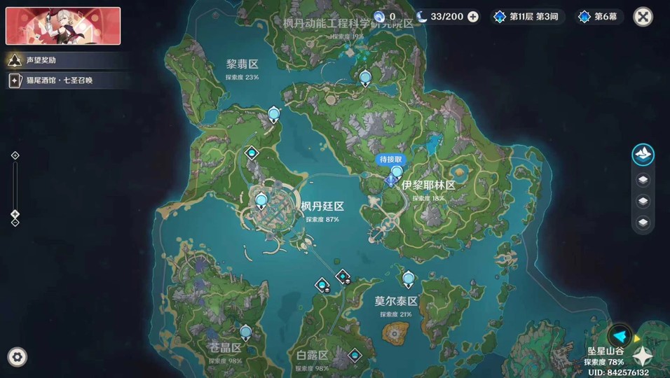 【女、1等、4金角、3金武】4+1那維萊特,0+0芙寧娜0+0希諾寧,地圖區域楓丹幾個地區都沒探索