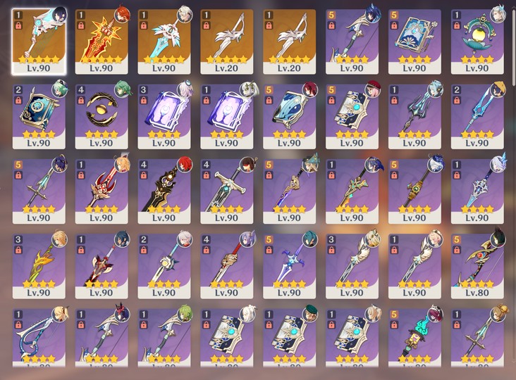 【男、60等、16金角、5金武】一手號(625抽(還有崩鐵帳號26五星角色,四個五星限定光錐,崩鐵還有290抽