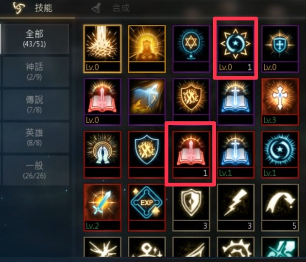 技能:2金【神聖制裁/化身】、7+1紫、8紅(Lv3/2/1/1)