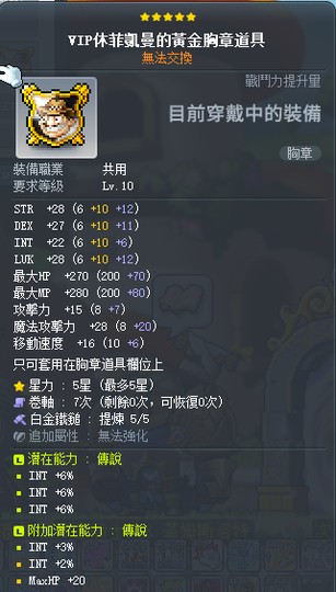 【VIP休菲凱曼的黃金胸章道具】琉德 白5 智%
