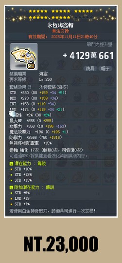 【永恆海盜帽】25C36%STR力附加97 次頂 全B捲 此單可直下