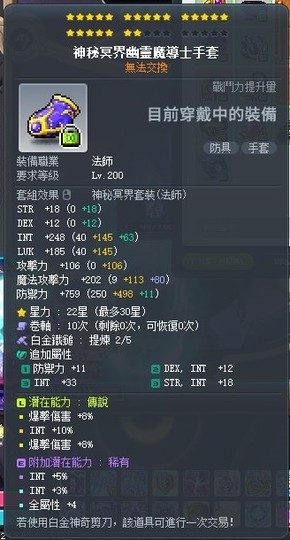 【神秘冥界幽靈魔導士手套】22星 雙爆+10+8%智 白2 全V