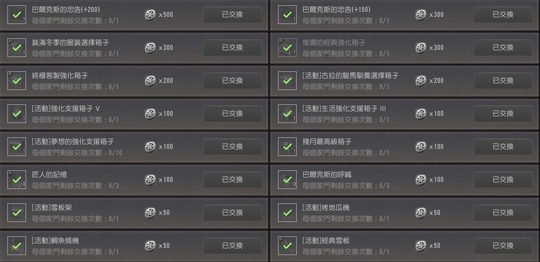200層+150層+冬季時裝箱+XX強化箱子+匠人30+呼喊30