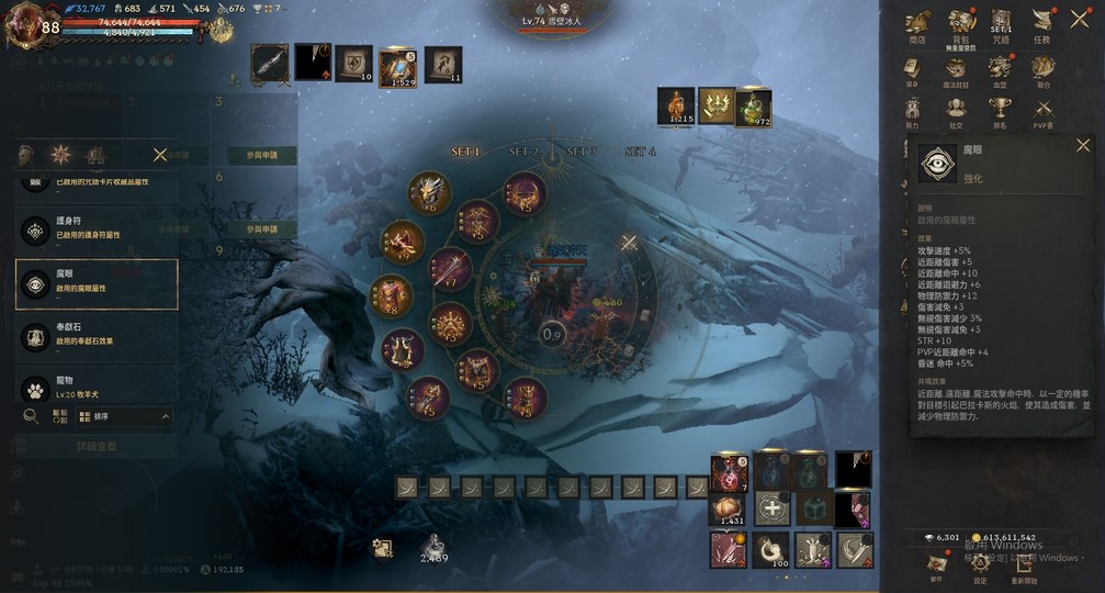 【素質】:血量74511、攻/命454/665、防/魔防683/571、減傷/PVP減傷282/108、暈命/抗暈62/175% 防禦裝