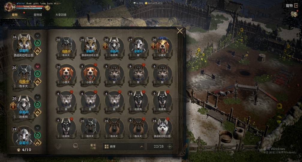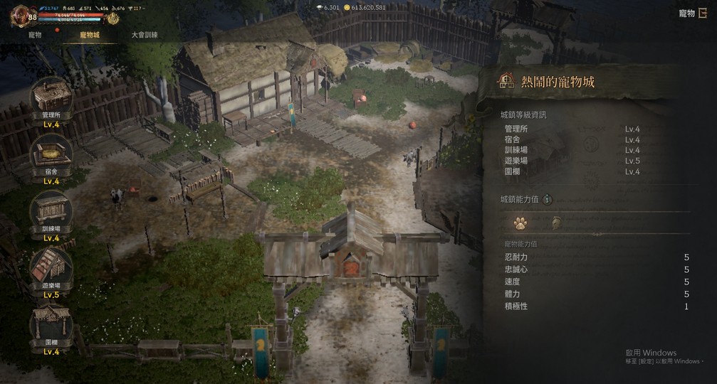【寵物城】:管理所Lv4、宿舍Lv4、訓練場Lv4、遊樂場Lv5、圍欄Lv4