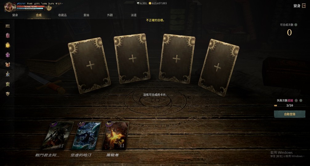 【淺力】: 一階滿、二階滿、三階缺高等抵抗、四階缺鷹眼、卓越抵抗、五階缺護甲遽升、經驗提升、最終抵抗 其他都有了