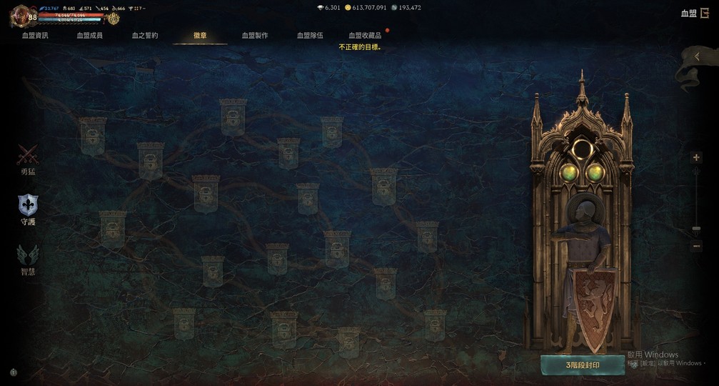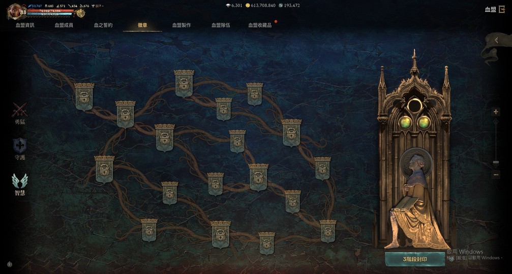 【血盟樹】:勇猛2階、守護2階、智慧2階