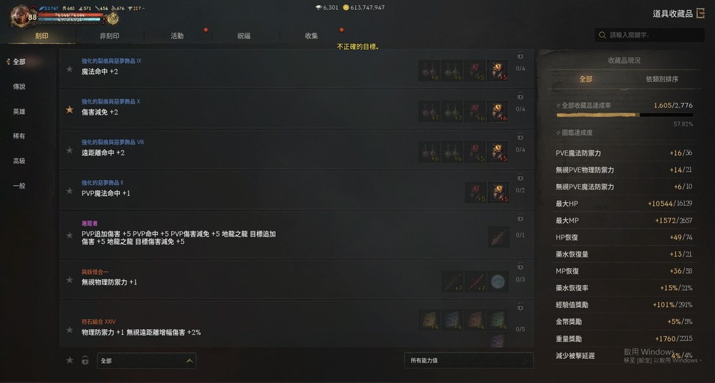 【總收藏】: 57.82% (近傷命83/100、力量28敏捷24、物防+130)