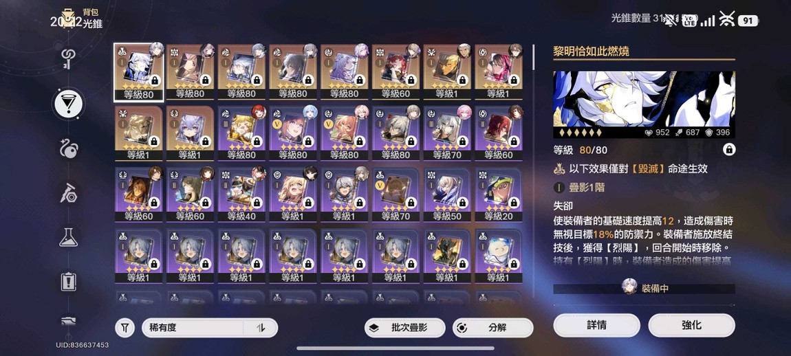 【女、70等、24金角、10金專】黑塔白厄2+1,昔蓮1+0,還有多角色都有命