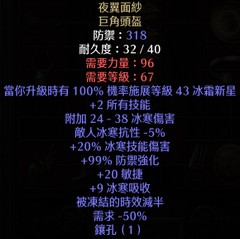 非天梯-夜翼面紗+20%冰傷-5%冰抗(已鑲55冰寶)+20敏+9冰吸