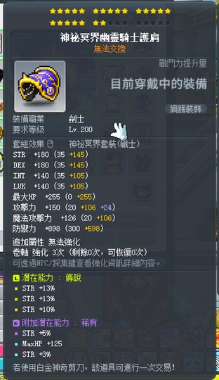 神秘肩膀 3500 神秘斗篷 2500 神秘鞋 售出