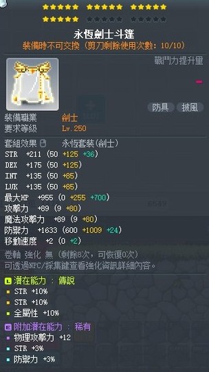 20C永恆劍士斗篷 30%力量(含有10%全屬) 附加稀有(+12物攻+3%力量 同效益8%力)